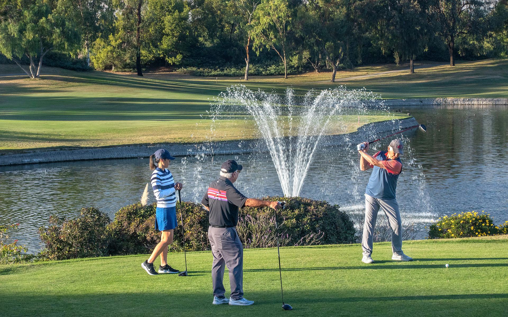 Old Ranch has 18 holes of golf designed by Ted Robinson, it is an enjoyable par 72 Championship Course featuring 128 acres of water and tree-lined fairways with meticulously maintained bentgrass greens. The course was carefully designed to provide a challenge to various skill levels while preserving the integrity of the terrain.